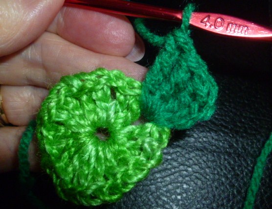 for the other half of the shell, do 3tr [3dtr], into the space the other side of the sl st of round 2,